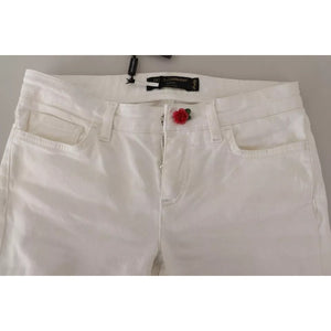 Dolce & Gabbana White Cotton Denim Pretty Slim Fit Jeans
