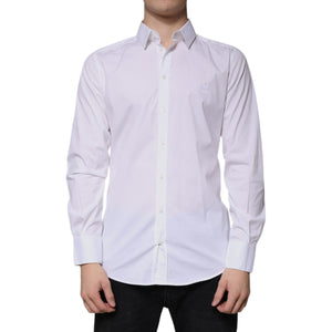 Dolce & Gabbana White Cotton Long Sleeve GOLD Dress Shirt
