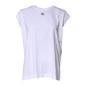 Dolce & Gabbana White Cotton Sleeveless Round Neck Tank Top