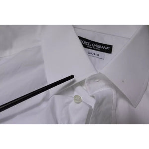 Dolce & Gabbana White Cotton Slim Fit Men GOLD Dress Shirt