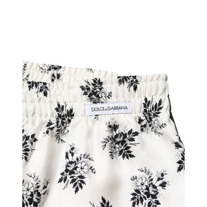 Dolce & Gabbana White Floral Silk Casual Lounge Pants