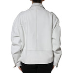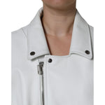 Dolce & Gabbana White Lambskin Leather Biker Coat Jacket