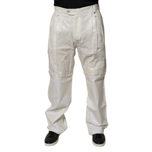 Dolce & Gabbana White Linen Mid Waist Straight Men Denim Jeans