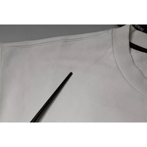 Dolce & Gabbana White Logo Cotton Crew Neck Pullover Sweater