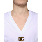 Dolce & Gabbana White Logo Cotton Vneck Short Sleeve T-shirt