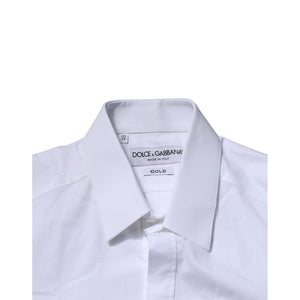 Dolce & Gabbana White Long Sleeves Dress GOLD Formal Shirt