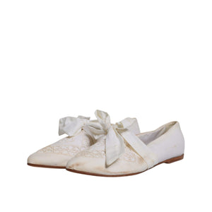 Dolce & Gabbana White Ribbon Fabric Ballerina Flats Shoes