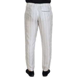 Dolce & Gabbana White Stripes Silk Lounge Trouser Pants