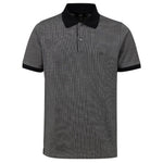 Dunhill Black Cotton and Silk Polo. In jacquard print fabric, front button fastening, black knit collar, small tone-on-tone logo embroidered on the side. Regular fit