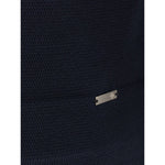 Dunhill Blue Pique Cotton T-Shirt. Contrasting black knit collar, small metal tag with logo applied on the side, regular fit