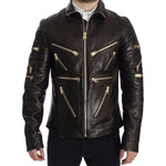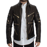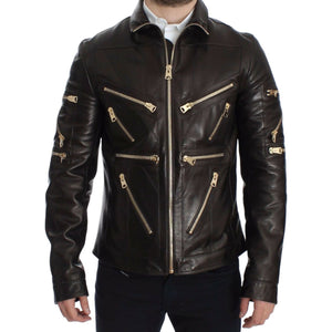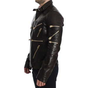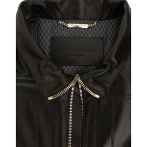 Dolce & Gabbana Brown Lambskin Leather Zipper Jacket