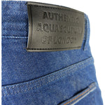 Step into the world of refined British style with Aquascutum’s exquisite men’s denim jeans. These Italian-crafted pants are a testament to classic design meets contemporary detail, featuring a sleek, dark blue hue that encapsulates a bold yet timeless aesthetic. Not just any jeans, they boast a quintessential 5-pocket construction, luxurious front button closure, and are distinguished by the iconic black back patch – an understated nod to the brand’s heritage. Suited for the modern man who commands attention with every stride.