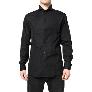 Emporio Armani Black Cotton Long Sleeves Formal Dress Shirt