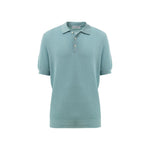 Polo Knitting Pattern in Azzurro Gran Sasso. Tennis model, regular collar with buttons, woven texture, short sleeves, waistband, regular fit.
