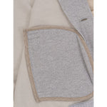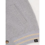 Gran Sasso College Jacket with Buttons. Made of gray-colored fleece, contrasting white sleeves, two-tone details on collar, cuffs and bottom, two side welt pockets.