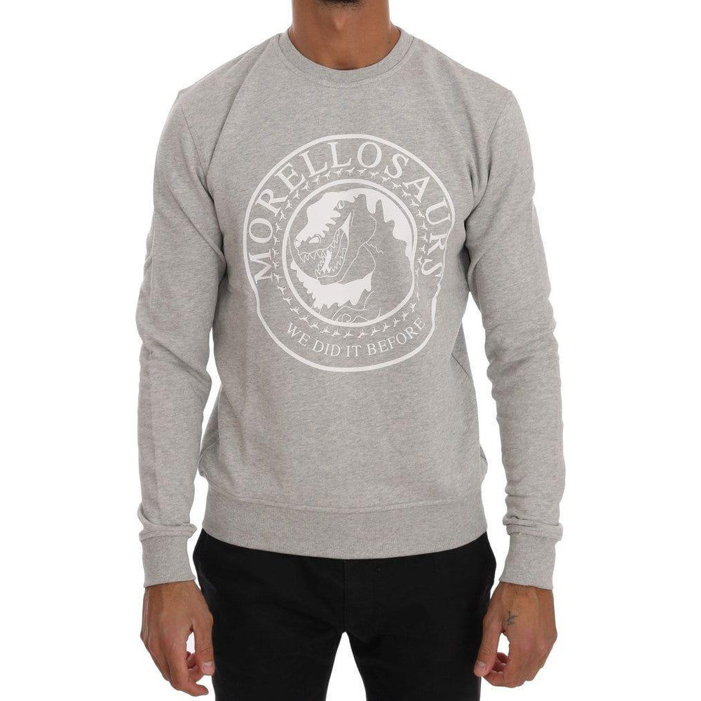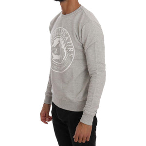 Frankie Morello Gray Cotton Crewneck Pullover Sweater