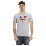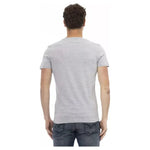 Elevate your wardrobe with the Trussardi Action T-shirt, a perfect blend of comfort and style. This gray tee captures the essence of casual chic with its short sleeves and round neckline, adorned with an eye-catching front print that sets you apart from the crowd. Crafted from a luxurious fusion of cotton and viscose, it epitomizes laid-back elegance, making it a versatile choice for any discerning gentleman. Step out with confidence in this Trussardi Action statement piece.
