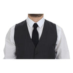 Dolce & Gabbana Gray Striped Wool Single Breasted Vest
