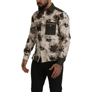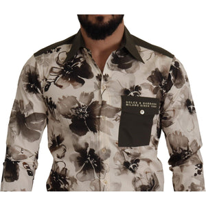 Dolce & Gabbana Green Beige Floral Cotton Stretch Exclusive Shirt