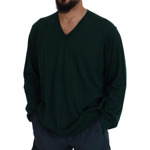 Dolce & Gabbana Green Cashmere V-neck Pullover Sweater