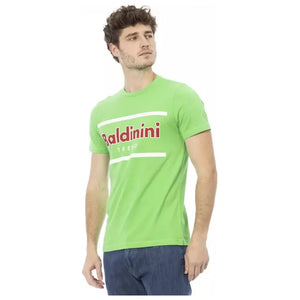 Elevate your everyday style with this suave ‘Baldinini Trend’ T-shirt. Boasting a refreshingly bold green hue, this cotton tee promises comfort and effortless panache. A striking front print adds an edgy touch to the classic short sleeve, round-neck silhouette – a testament to your fashion-forward choices. Get ready to turn heads and make a statement with every wear.