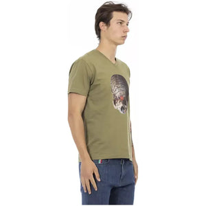 Indulge in the seamless blend of premium comfort and modern flair with this Trussardi Action V-neck T-shirt. The minimalist yet striking front print injects a dose of cool to any ensemble, ensuring you make a statement without saying a word. Crafted with a tasteful touch of green, it’s an ideal canvas for both casual and elevated looks. Embrace the luxury of fine craftsmanship and contemporary design with every wear.