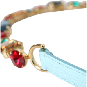 Dolce & Gabbana Light Blue Leather Crystal Chain Waist Belt