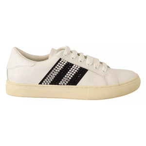 Marc Jacobs White Leather Crystal Embellished Sneakers Shoes