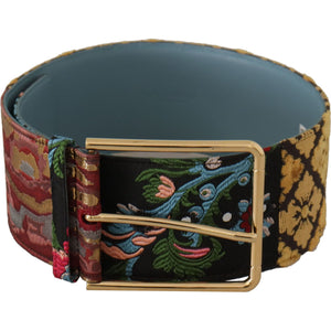 Dolce & Gabbana Multicolor Embroidered Leather Gold Metal Buckle Belt