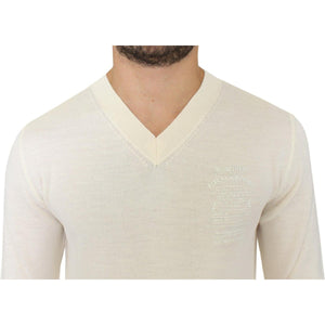 • Ermanno Scervino Off White Wool Blend V-neck Pullover Sweater