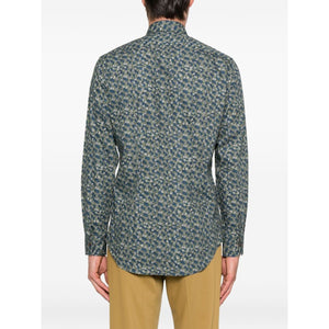 teal blue floral print long sleeves button fastening classic collar Printed shirt