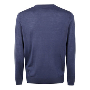 petrol blue merino wool crew neck long sleeves ribbed cuffs ribbed hem Wool crewneck sweater