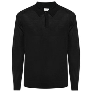black short front button fastening long sleeves ribbed cuffs and hem Wool polo shirt