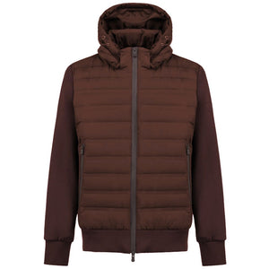Exude modern sophistication with the ‘People Of Shibuya’ jacket, crafted for those who command attention. This luxe piece features a matte nylon hood and heat-sealed quilted front, generously filled with a 90/10 down blend for ultimate warmth. The sleeves and back, tailored from a stretchy technical fabric, are designed to move with you. Shield yourself against the elements with its water-repellent and windproof zipper, while two front pockets and a drawstring hood add functional finesse to your ensemble. Dare to dominate in this sleek, brown statement jacket.