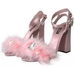 Dolce & Gabbana Pink Turkey Feather Embellished Sandals Shoes