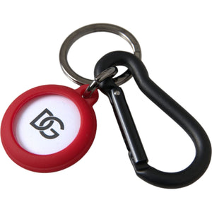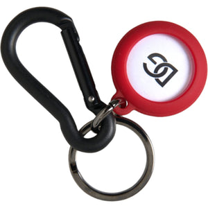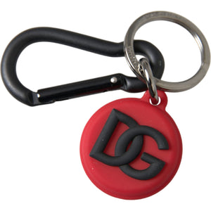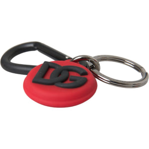 Dolce & Gabbana Red Rubber DG Logo Round Metal Brass Keyring Keychain