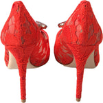 Dolce & Gabbana Red Taormina Lace Crystal Heels Pumps Shoes