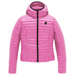Refrigiwear light jacket in technical fabric, pink in colour, with elasticated hood and genuine duck down padding. Open side pockets and front zip fastening.