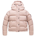 Refrigiwear short down jacket in opaque nylon with feather padding, hood with drawstring, button and zip fastening, two side pockets
