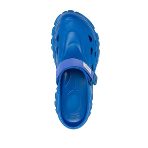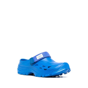 MOK touch-strap mules from SUICOKE featuring blue, cut-out detailing, logo patch to the side, touch-strap fastening, almond toe, moulded footbed, EVA midsole, low sculpted heel and rubber sole. When buying this unisex item, keep in mind that it is graded in standard men's sizing.. Mok sandals Size and Fit - Heel 1 in / 2,5 cm; Platform 0,8 in / 2 cm