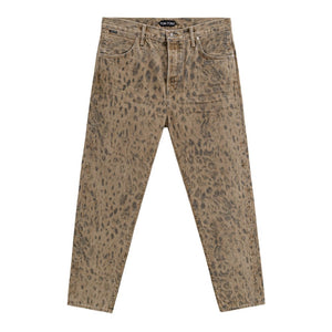 Tom Ford Leopard Print Tapered Beige Jeans. Front button fastening, five pockets, low crotch and wide hips, tapered ankles. Leather logo tag on back pocket.