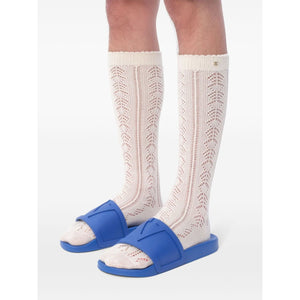 blue maxi VLogo Signature single toe strap moulded footbed flat rubber sole Coolside pool slides Size and Fit - Heel 1,2 in / 3 cm, Platform 0,4 in / 1 cm