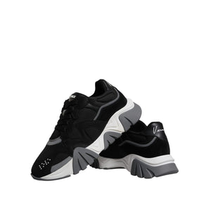 Versace Black Leather Neoprene Chunky Low Top Sneakers Squalo Shoes