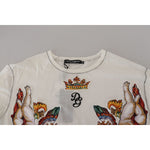 Dolce & Gabbana White Printed Short Sleeves Men T-shirt