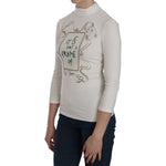 Exte White Printed Turtle Neck 3/4 Sleeve Top Cotton Blouse