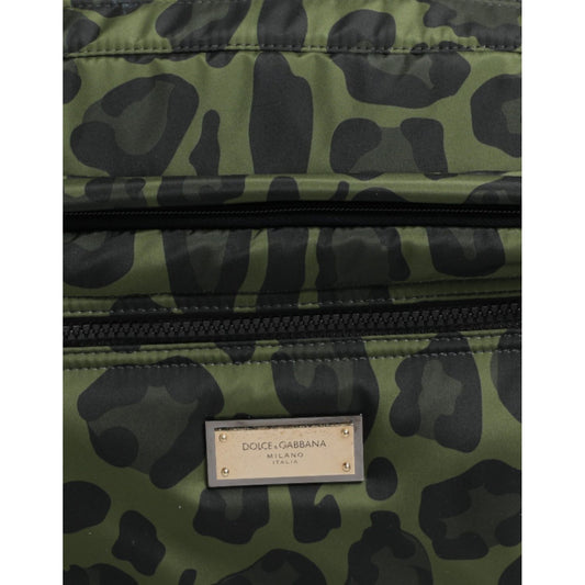Dolce & Gabbana Green Nylon Leopard Print Shell Messenger Crossbody Bag