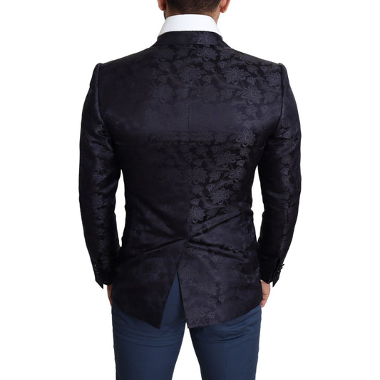 优雅蓝色丝绸混纺马提尼西装外套