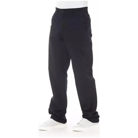撞色缝线时尚蓝色棉质长裤