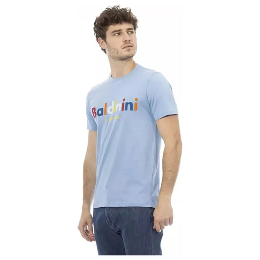 时尚灰色棉混纺 T 恤,正面带有艺术印花