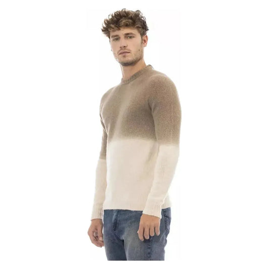 米色莫代尔羊绒圆领毛衣